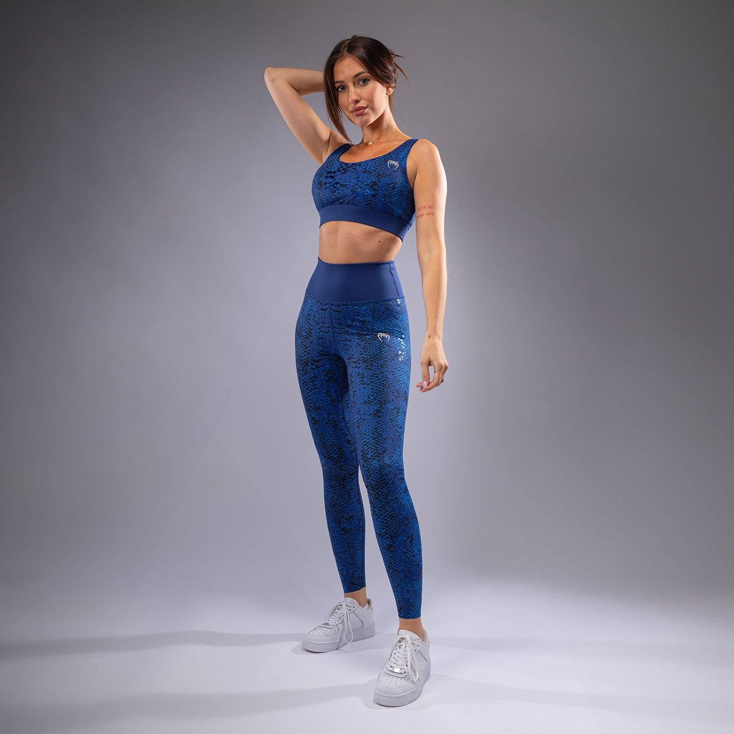 Le soutien-gorge de sport Venum Amazonia pour femmes est un véritable bijou avec son dos asymétrique et ses bretelles entrelacées. La couleur Ultramarine et les détails métalliques donnent une touche unique à ce motif de peau de serpent revisité.