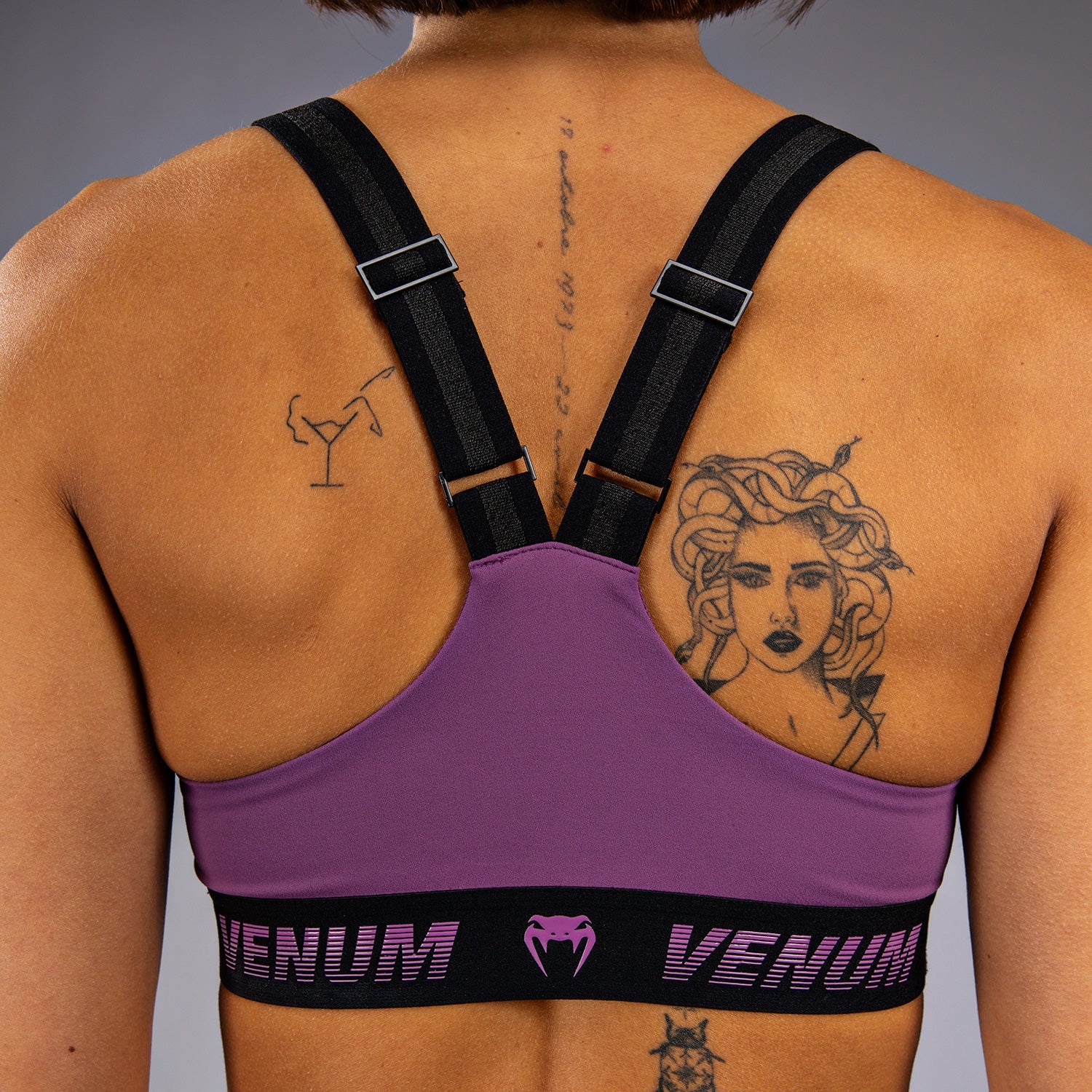 La brassière de sport Venum Elevate est un brassière minimal doté de bretelles réglables et d'une bande élastique de maintien au niveau de la poitrine.