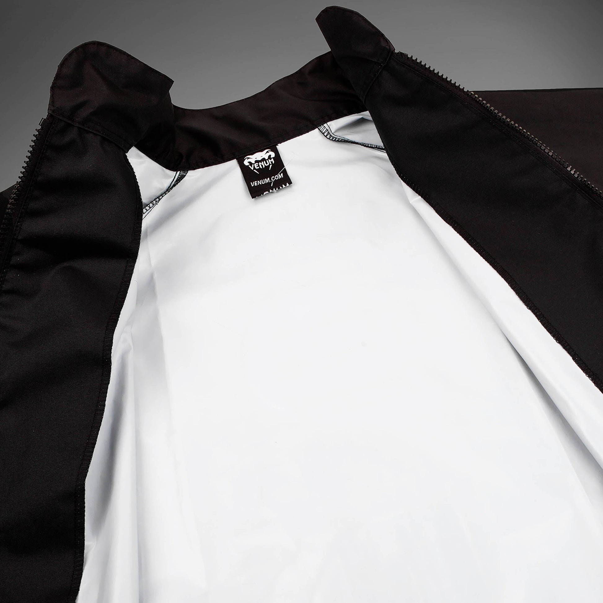 Le design n’est pas en reste avec une imposante tête de serpent sur la face avant de la veste au niveau du torse et l’inscription Venum sur le bras gauche porté. Le pantalon est taggé Venum sur la jambe gauche portée.