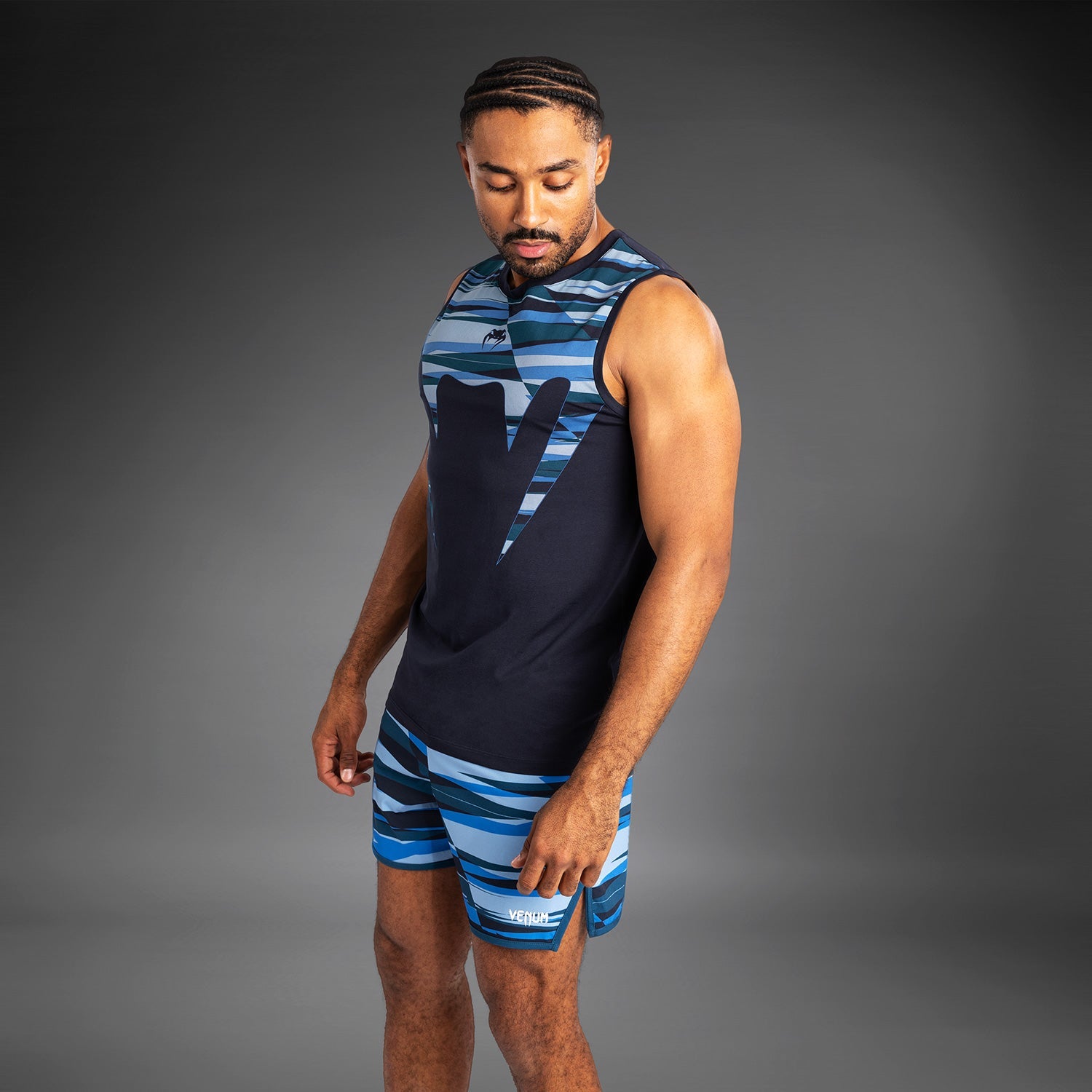 Le débardeur Venum Rapid pour hommes en bleu ombre est conçu dans un coton premium et présente une coupe régulière sans manches. Le logo Venum, illustré avec dynamisme sur la poitrine, arbore les lignes graphiques distinctives de la collection.