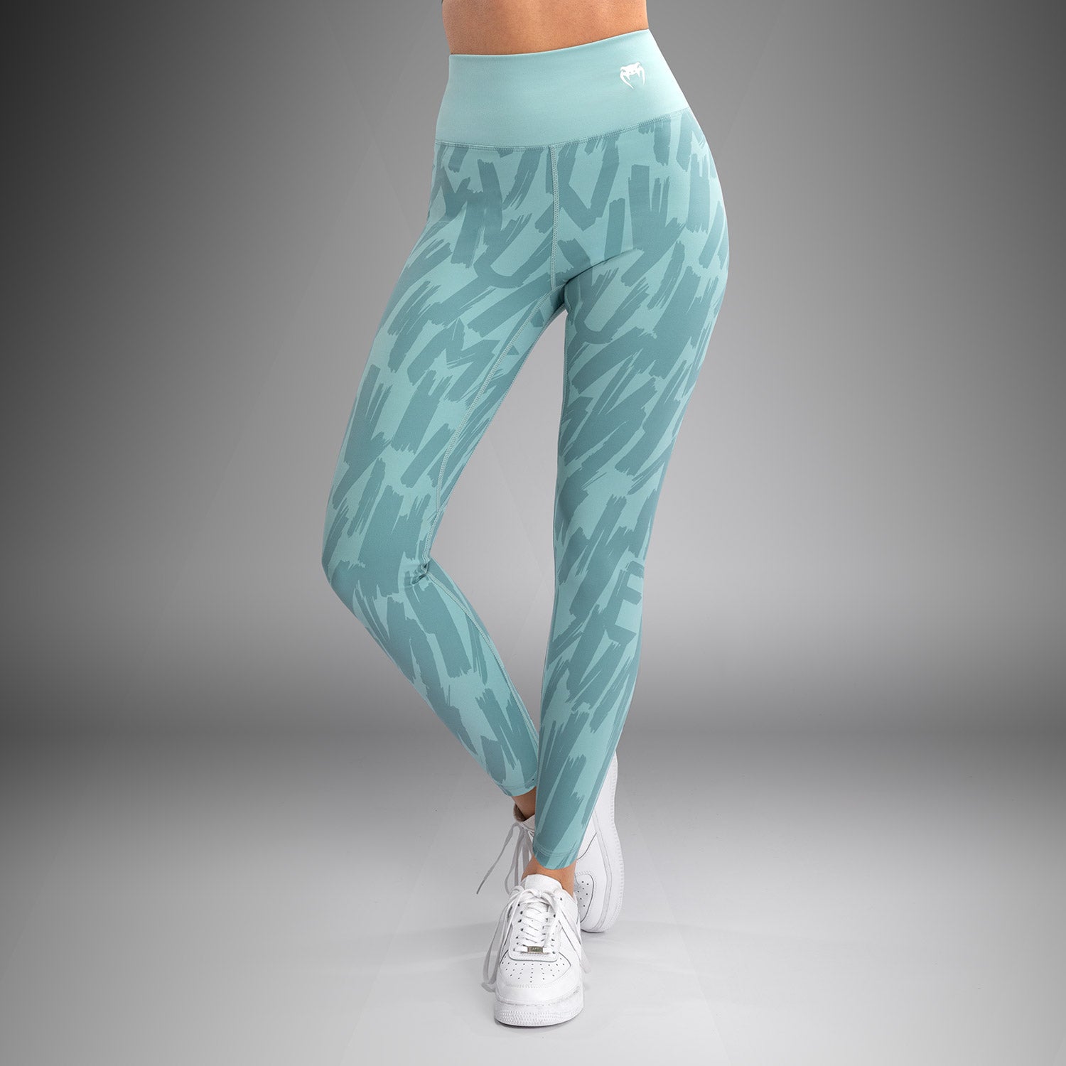 Les leggings longs Venum Graffiti pour femmes en aqua sont taille haute et conçus pour résister aux squats, avec un motif graffiti ton sur ton et le logo blanc de Venum imprimé sur la hanche. Le tissu est légèrement compressif mais léger, offrant une sensation douce et à peine perceptible.