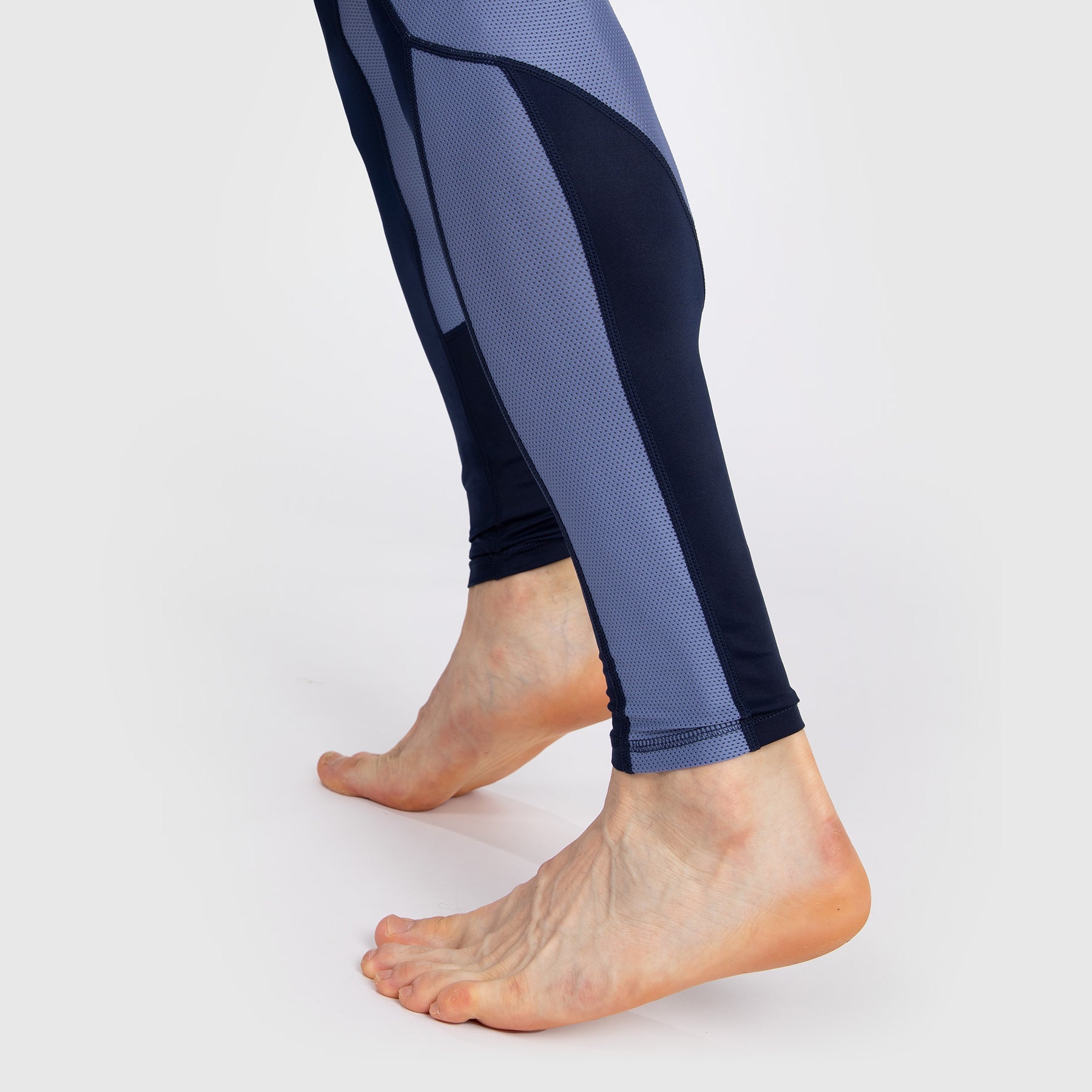 Les spats pour hommes Venum Tempest en bleu marine/bleu agissent comme une seconde peau pour offrir protection contre les blessures et liberté de mouvement pendant le grappling. La technologie de compression aide également à favoriser la récupération musculaire.