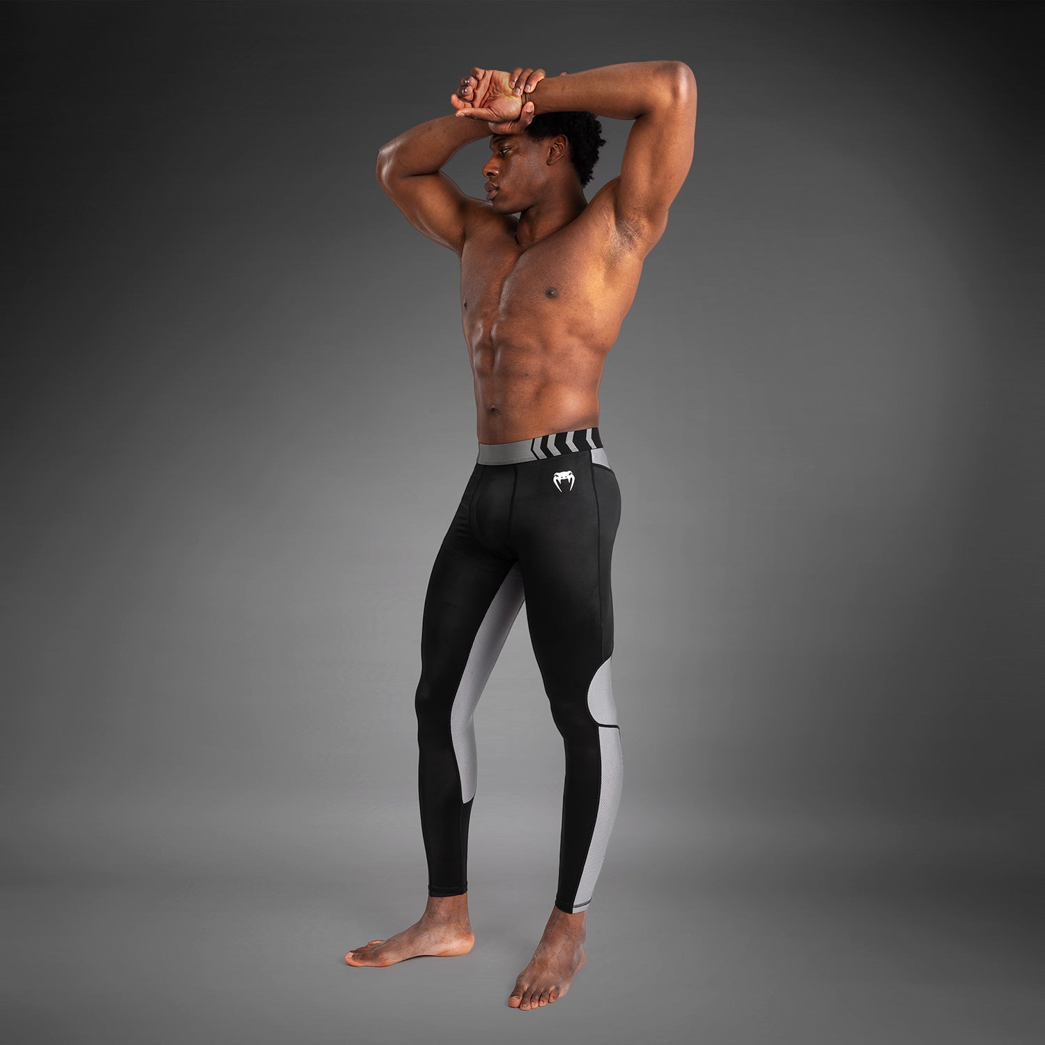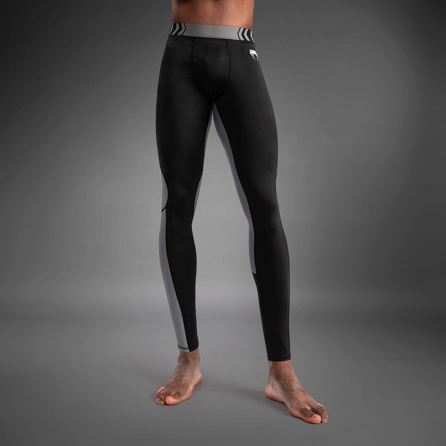Les spats pour hommes Venum Tempest en noir/gris agissent comme une seconde peau pour offrir protection contre les blessures et liberté de mouvement pendant le grappling. La technologie de compression aide également à favoriser la récupération musculaire.