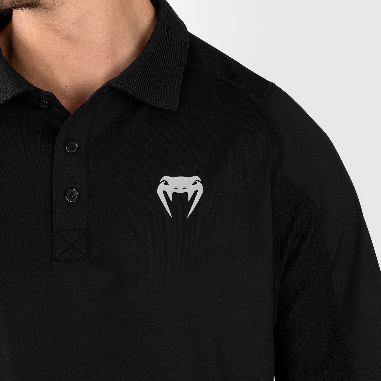 Ce polo noir boutonné présente des rayures rouges dans le dos et des logos Performance Institute et Venum gris argenté sur la poitrine. Associez ce polo au pantalon ou aux guêtres pour hommes pour un look complet.