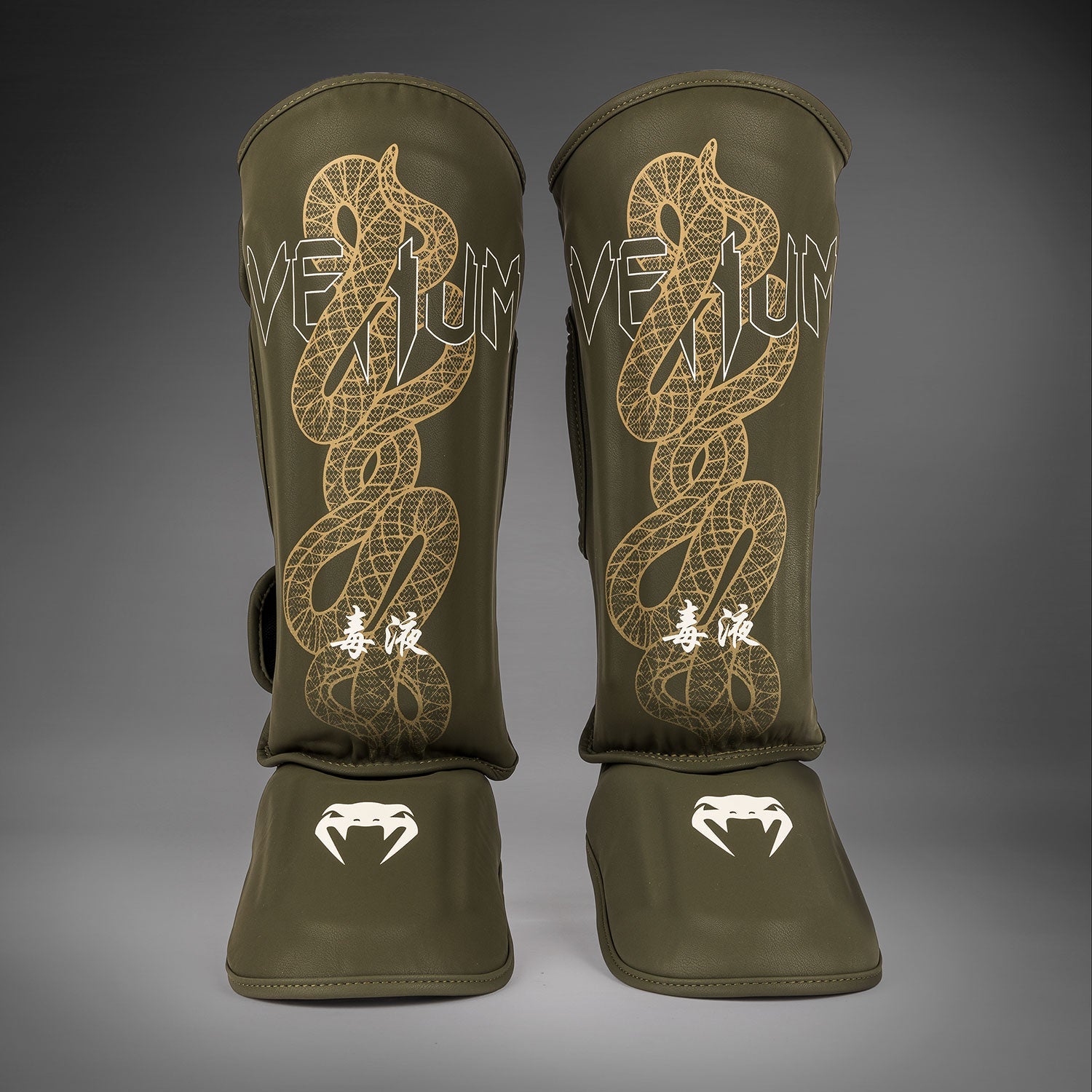 Protège-tibias Venum Serpenti – Kaki/Bronze/Ivoire