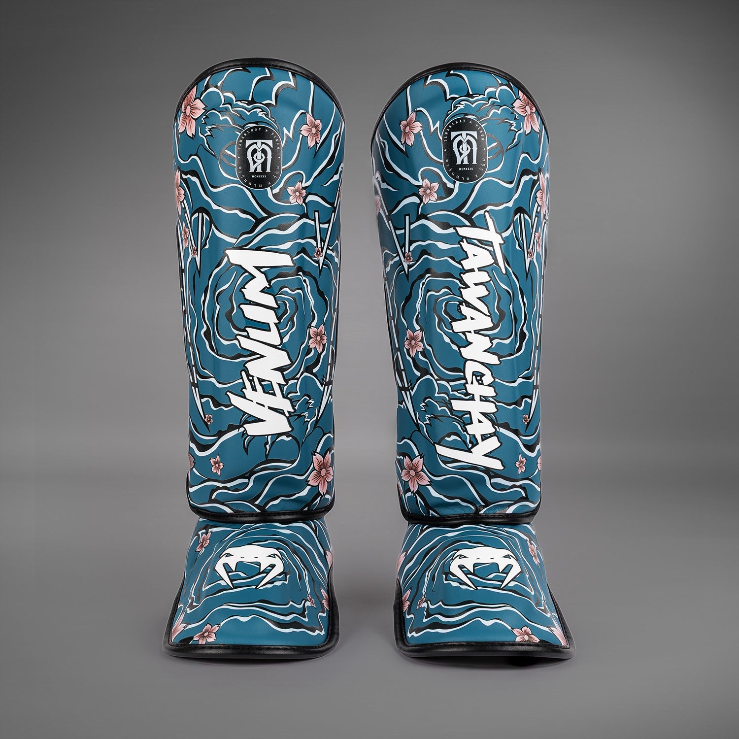 Avec leurs motifs hypnotiques en forme de tourbillon, le design des protège-tibias Venum x Tawanchai s’inspire du style de combat de Tawanchai : attirer l’adversaire avant de frapper avec une précision chirurgicale. Les fleurs de sakura rappellent la tradition et la beauté du Muay Thai.