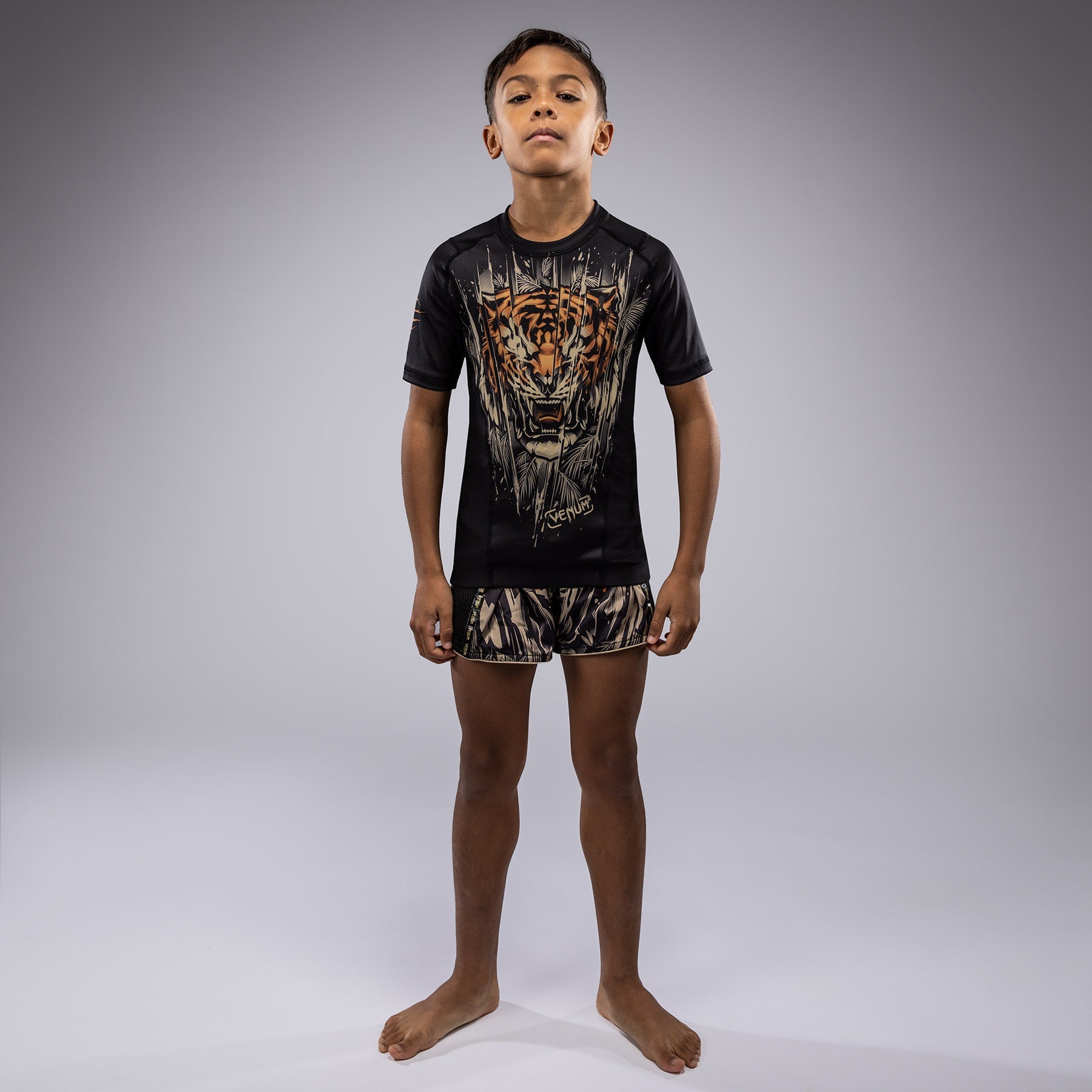 Rashguard à Manches Courtes Venum Tiger pour Enfants - Noir/Orange Néon