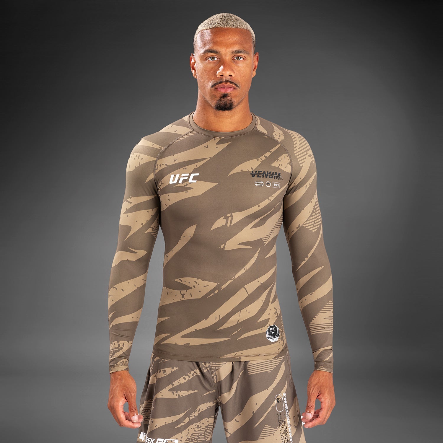 Ses motifs audacieusement camouflés, ornés des logos blancs de Venum et de l'UFC, s'inspirent des athlètes qui pénètrent dans l'Octogone, prêts à donner et recevoir des coups.