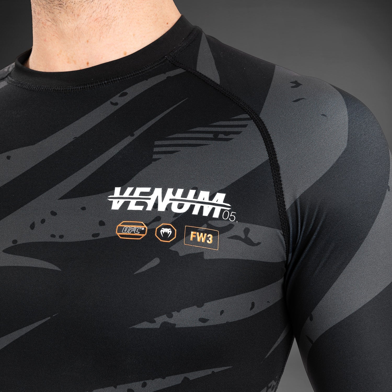Le Rashguard Performance Long Sleeve Fight Week UFC Adrenaline de Venum, agit tel une seconde peau, offrant à la fois une protection contre les blessures et une liberté de mouvement pour les combats au sol. La technologie de compression contribue à accélérer la récupération musculaire.