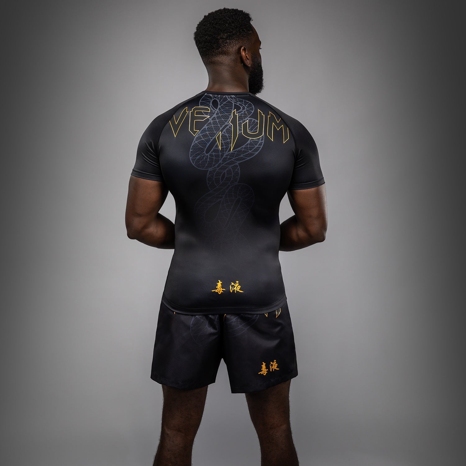 Rashguard Manches Courtes Venum Serpenti – Noir/Argent/Or