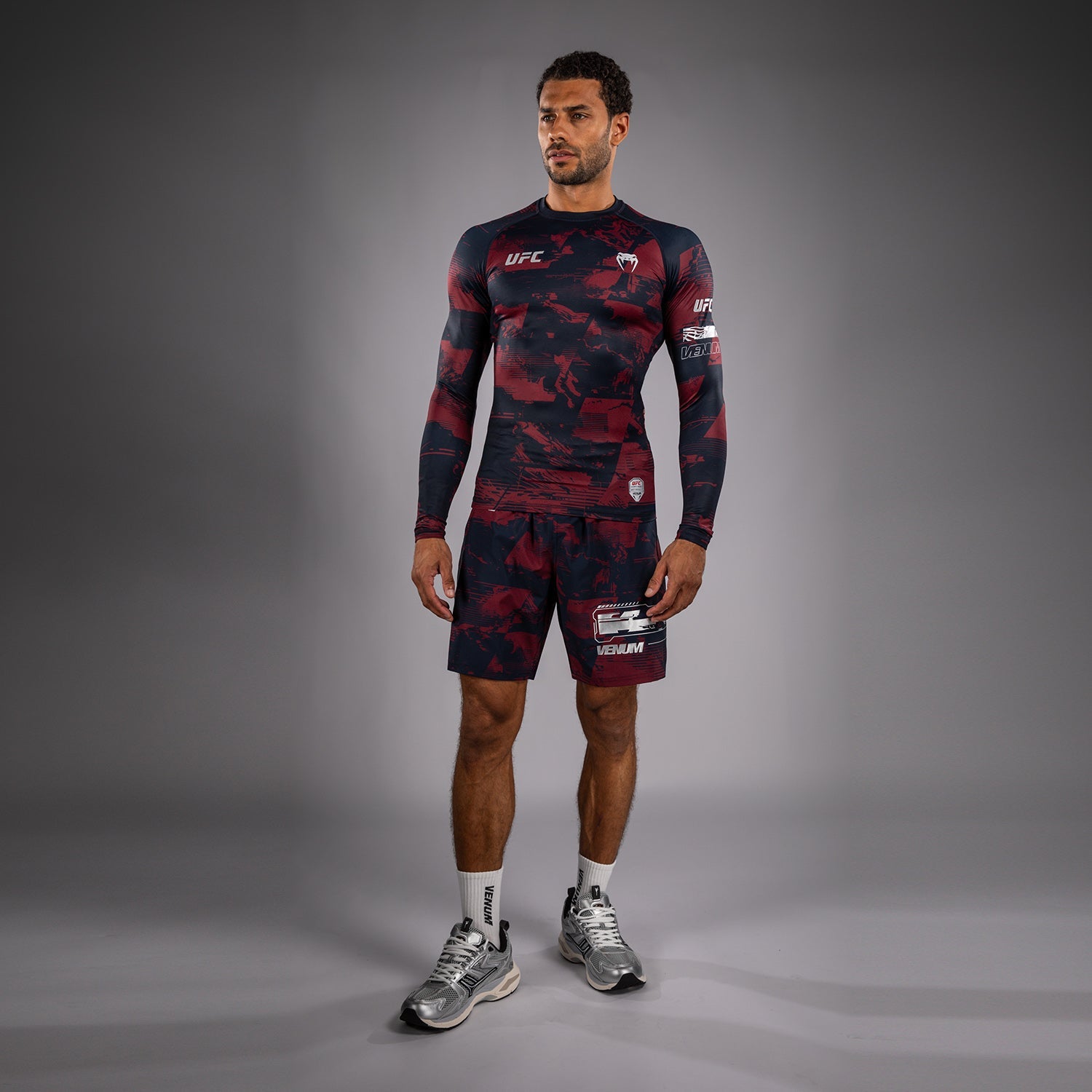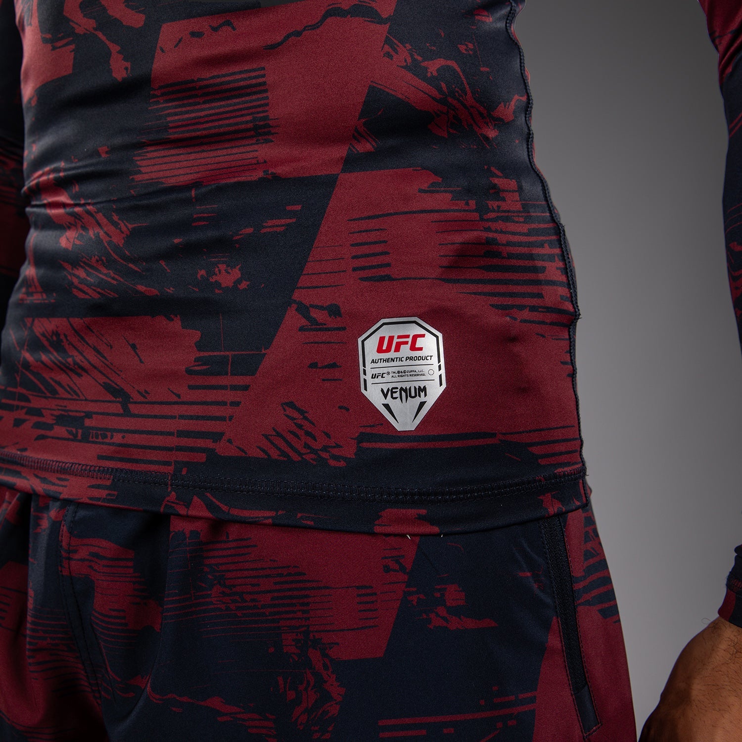 Rashguard manches longues Performance Homme UFC Zenith by Venum Authentic Fight Week - Bleu marine/Bordeaux/Argent