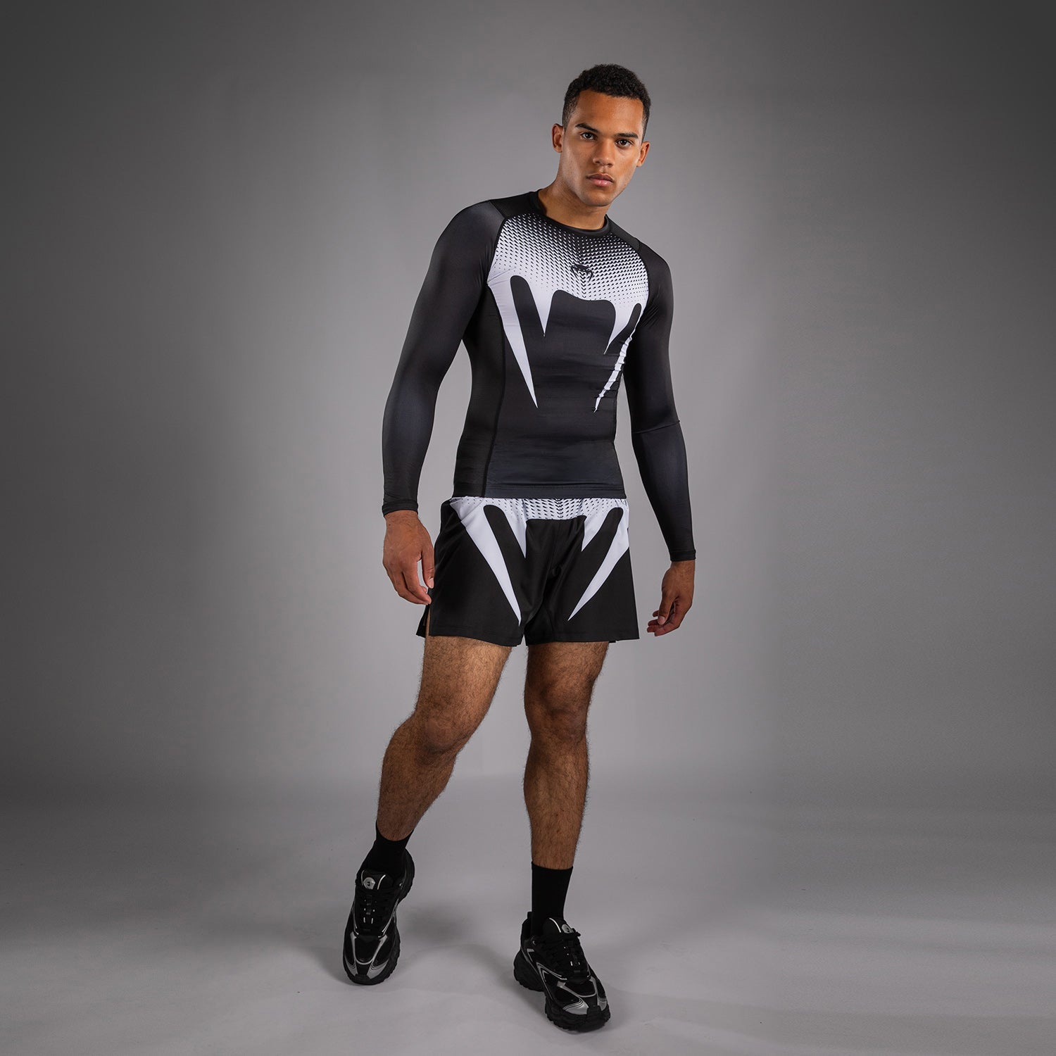 Collection Venum No Gi IBJJF Approved. Ce rashguard à manches longues, officiellement homologué et classé par l’IBJJF, est conçu pour l’entraînement et la compétition en jiu-jitsu et MMA. Il offre une compression musculaire optimale, prévient les brûlures de tapis et les blessures dues aux frottements, tout en garantissant confort et performance lors des phases au sol intenses.