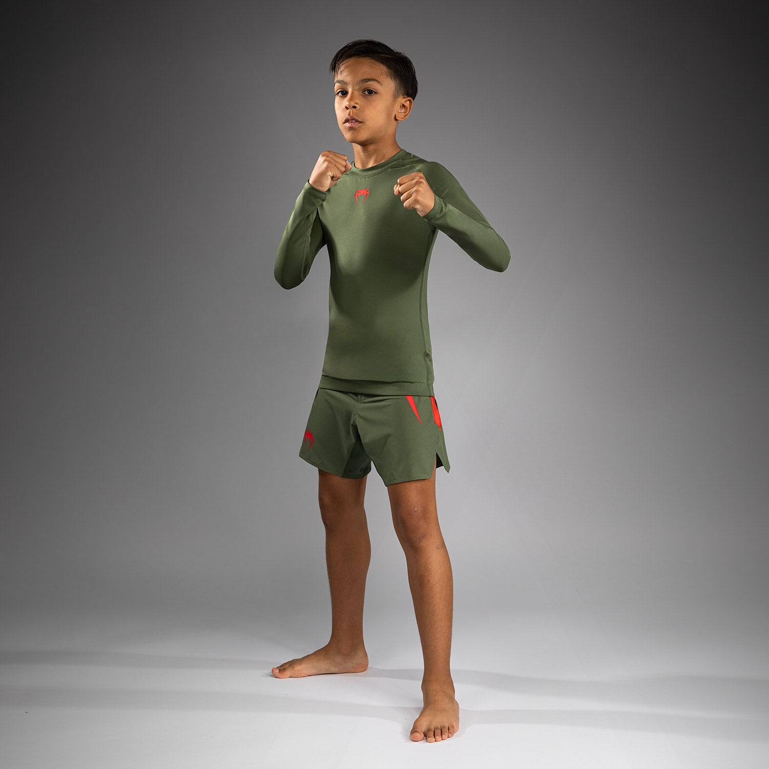 Rashguard Manches Longues pour Enfants Venum Contender - Vert militaire/Orange