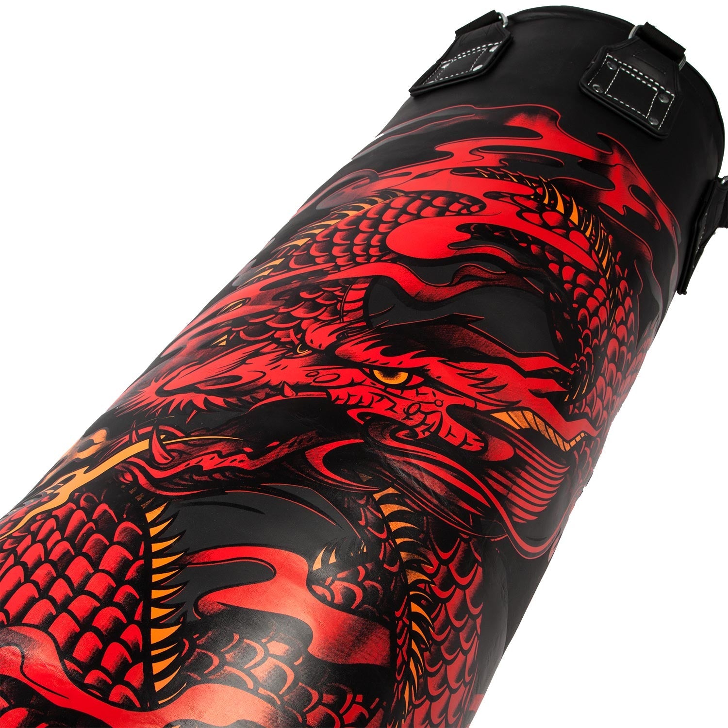 Le sac de frappe Dragon's Flight est équipé de sangles de suspension permettant de l’accrocher dans un endroit approprié et dispose d’une boucle d'amarrage afin de le fixer au sol, si besoin.