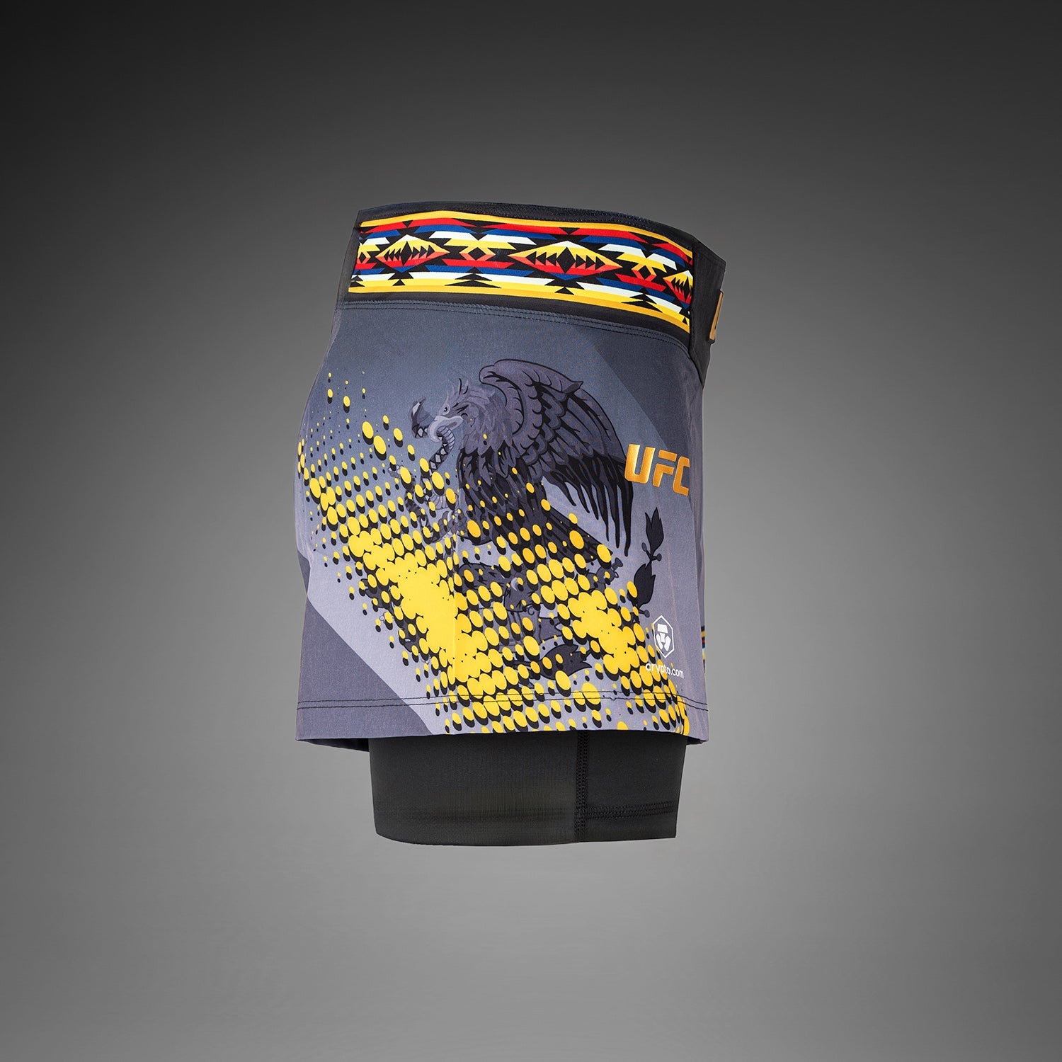 Ce short de combat authentique est le modèle exact porté par Julianna "The Venezuelan Vixen" Peña, fabriqué en tissu léger et flexible avec des fentes latérales thermocollées pour une liberté de mouvement optimale. Dans sa conception, Peña s'est inspirée de ses racines vénézuéliennes, mexicaines et américaines, y compris son héritage amérindien, mêlant des éléments de drapeaux nationaux à des motifs inspirés des Aztèques.