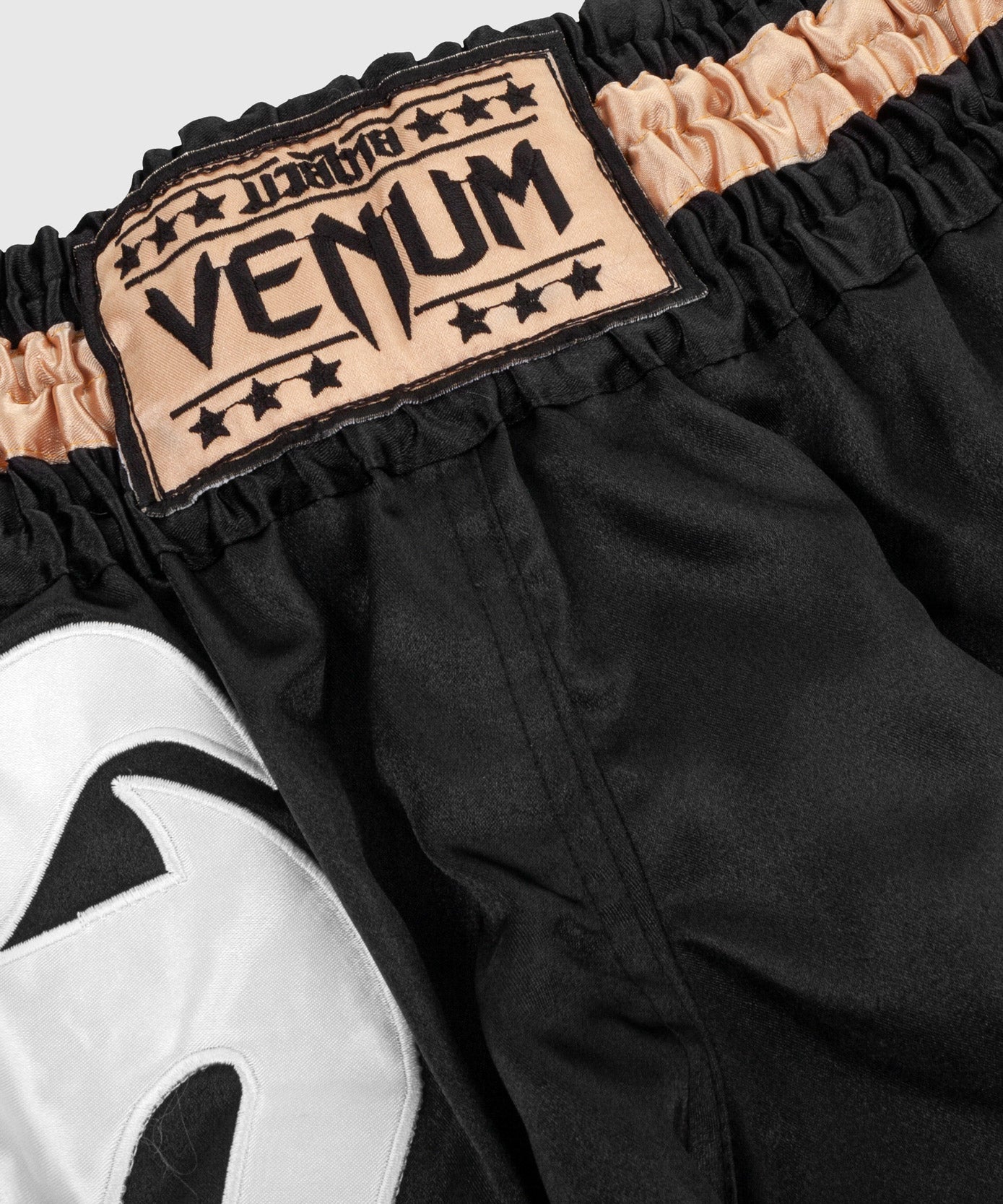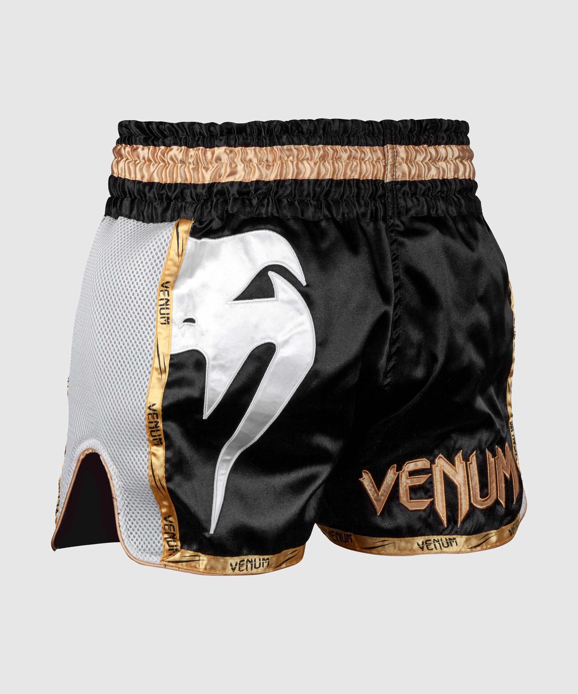 Fabriqué dans la pure tradition thaïlandaise, le short de muay thai Venum Giant se compose d’une matière satinée de haute qualité qui le rend particulièrement résistant.