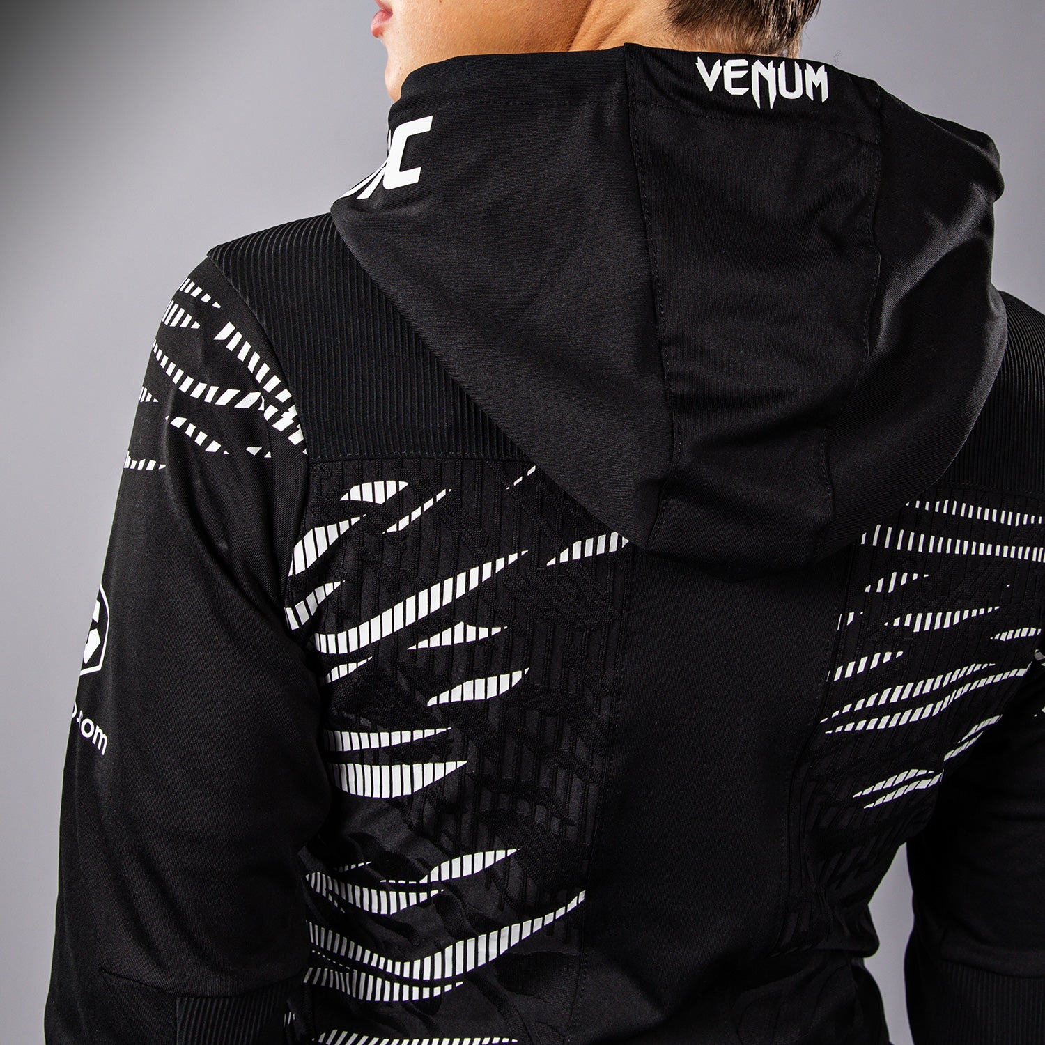 Le hoodie de sortie pour femmes UFC Fusion par Venum Authentic Fight Night présente deux poches zippées, ainsi qu'une capuche doublée en mesh avec des cordons de serrage réglables. Les poignets et le panneau intérieur des bras sont fabriqués avec un tissu extensible de qualité supérieure, permettant aux athlètes d'enlever leurs hoodies sans retirer leurs gants.