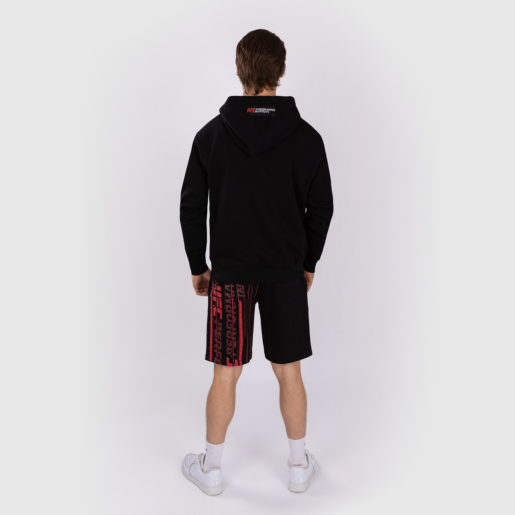 Ce sweat à capuche noir arbore le graphisme dynamique rouge et blanc de la collection, ainsi que les logos UFC Performance Institute et Venum sur la poitrine. Un écusson de l'UFC Performance Institute se trouve à l'arrière de la capuche.