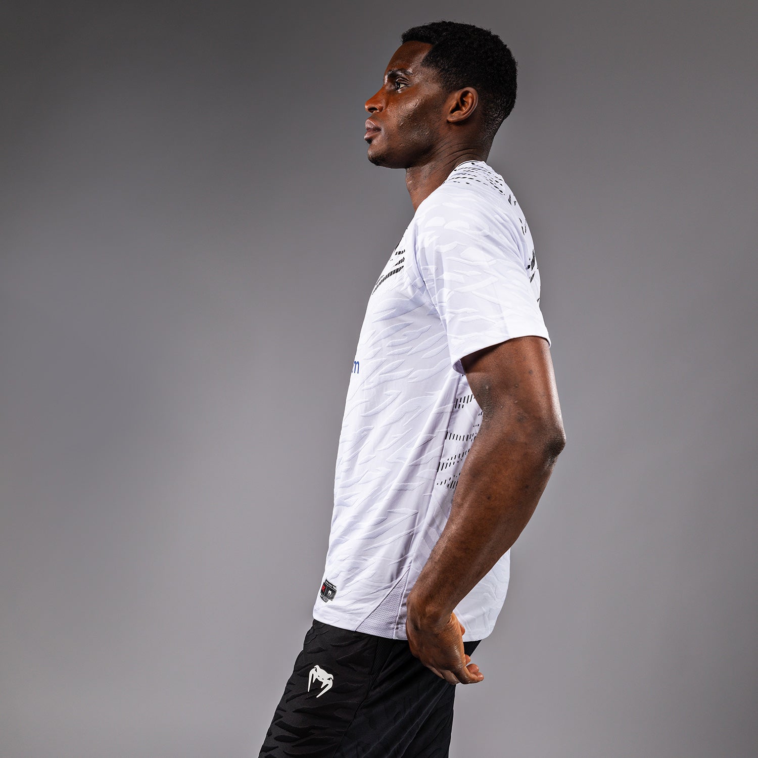 Le maillot de sortie UFC Fusion par Venum Authentic Fight Night pour hommes en blanc est une chemise de performance légère avec suffisamment d'élasticité pour bouger avec vous. Vous resterez à l'aise et au frais grâce au tissu Dry-Tech de la chemise, même pendant les séances d'entraînement les plus intenses.