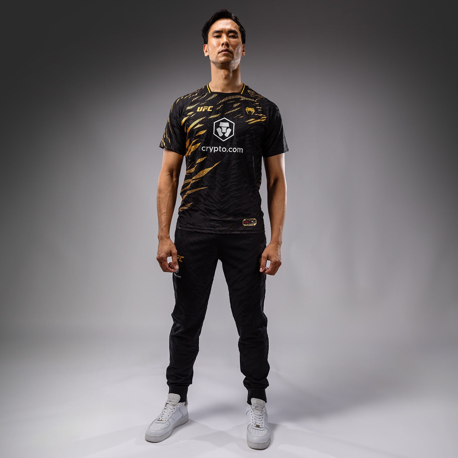 Le maillot de sortie pour hommes UFC Fusion par Venum Authentic Fight Night en Noir/Or est une chemise de performance légère avec suffisamment d'élasticité pour bouger avec vous. Vous resterez à l'aise et au frais grâce au tissu Dry-Tech de la chemise, même pendant les séances d'entraînement les plus intenses. Cette combinaison de couleurs Noir/Or est réservée aux champions UFC.
