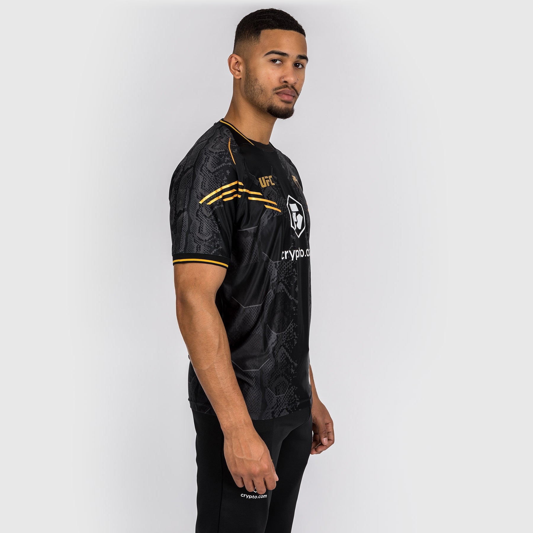 Le design audacieux, avec ses graphismes en peau de serpent sublimée et son logo doré, est un clin d'œil à l'adrénaline que l'on ressent lorsqu'on entre dans l'octogone.