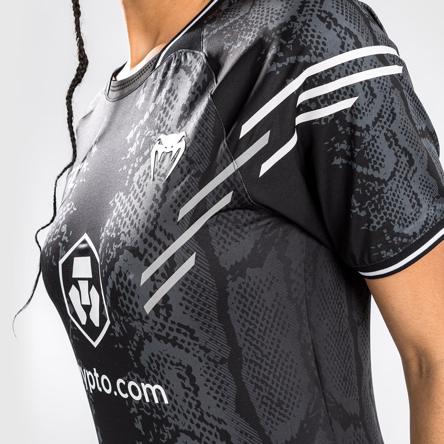 Le design audacieux, avec ses graphismes en peau de serpent sublimée et son logo blanc, est un clin d'œil à l'adrénaline que l'on ressent lorsqu'on entre dans l'octogone.