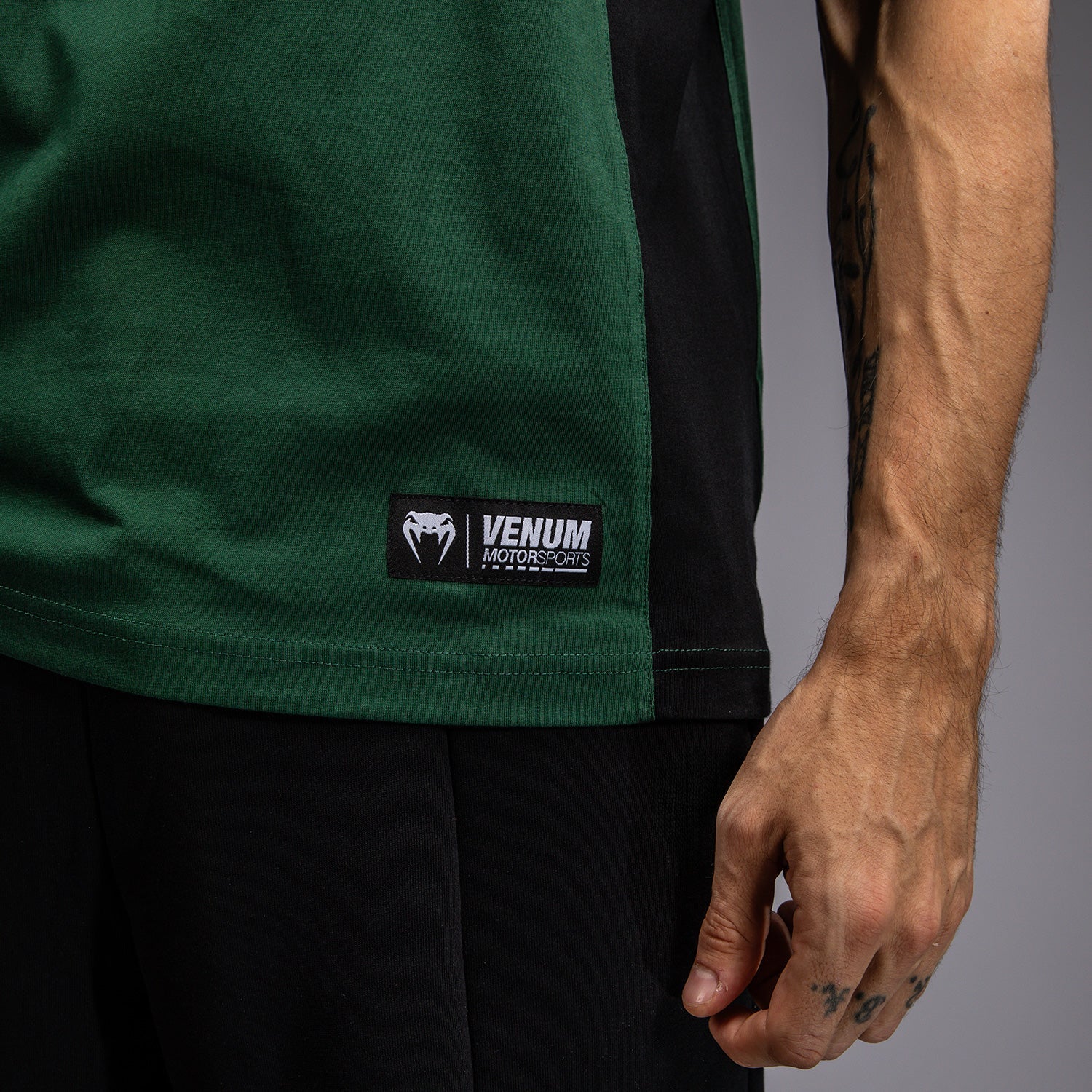 Le T-shirt Venum Motorsport en Deep Forest est un tee-shirt à col rond à coupe régulière avec des panneaux noirs contrastants sur les côtés. Arborant des patches imprimés et brodés en noir et blanc inspirés par les sports mécaniques de Venum, ce t-shirt est prêt pour la piste !