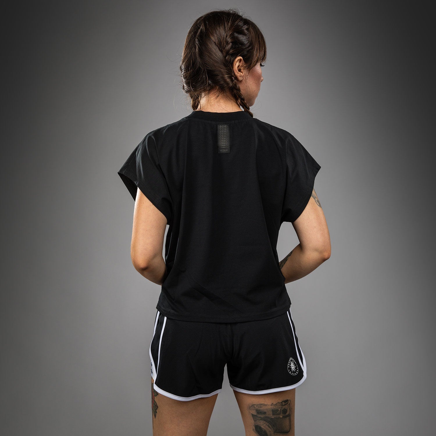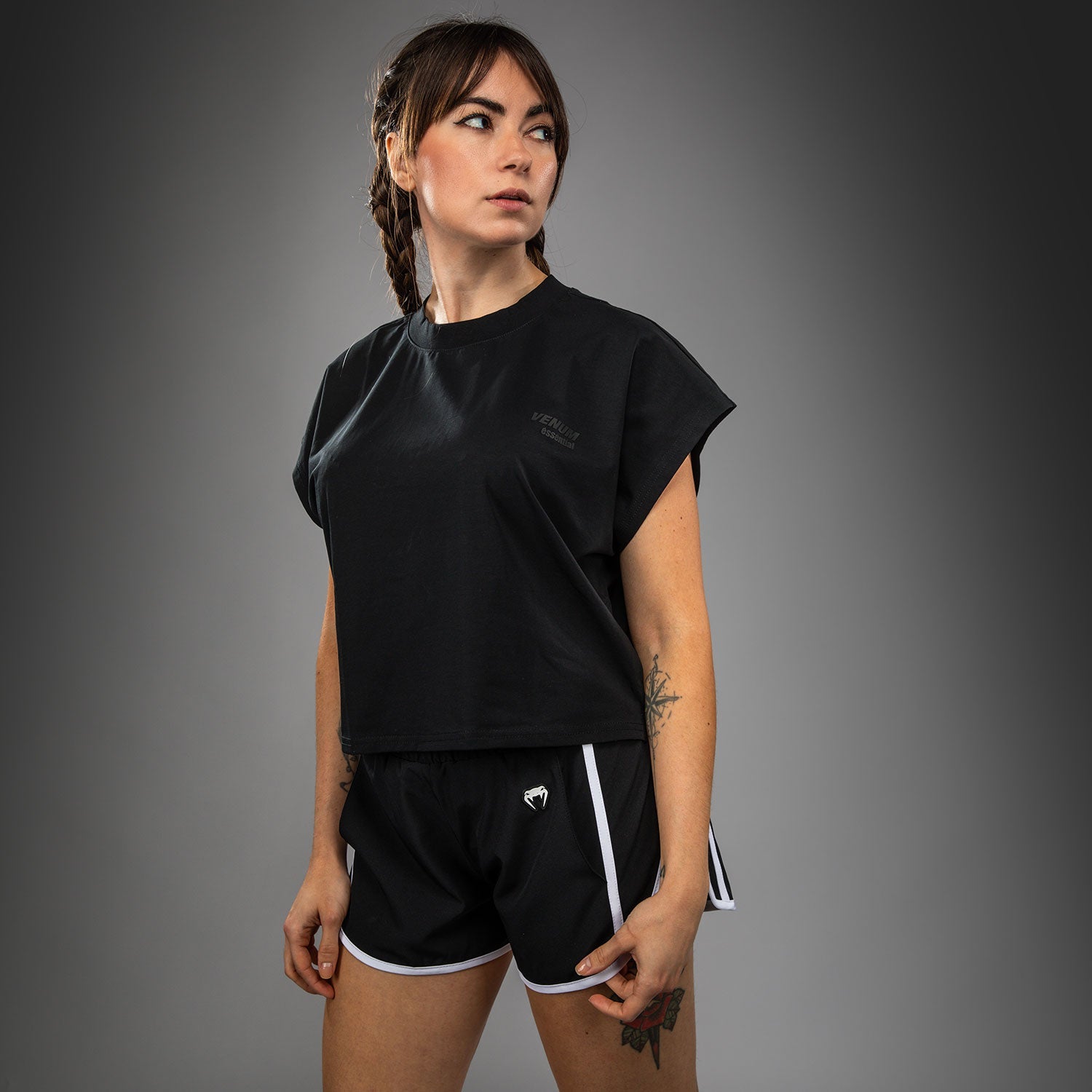 Le T-shirt Venum Twilight pour femme a une silhouette ample et carrée avec une longueur légèrement raccourcie. Les manches courtes amples ont un effet d'épaules tombantes pour un style décontracté et minimaliste. Le logo subtil ajoute une touche de finition élégante. Associez ce t-shirt à vos joggings ou shorts Venum taille haute préférés.