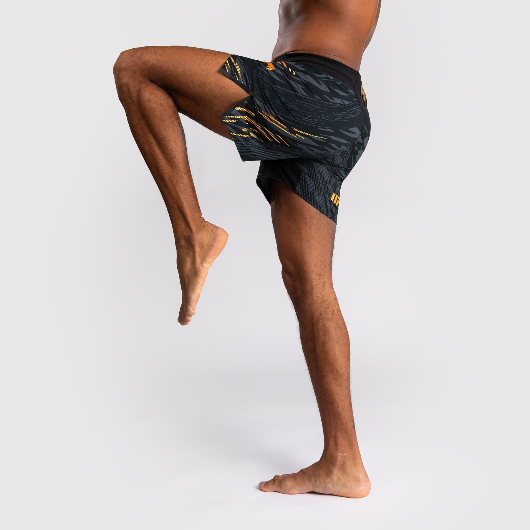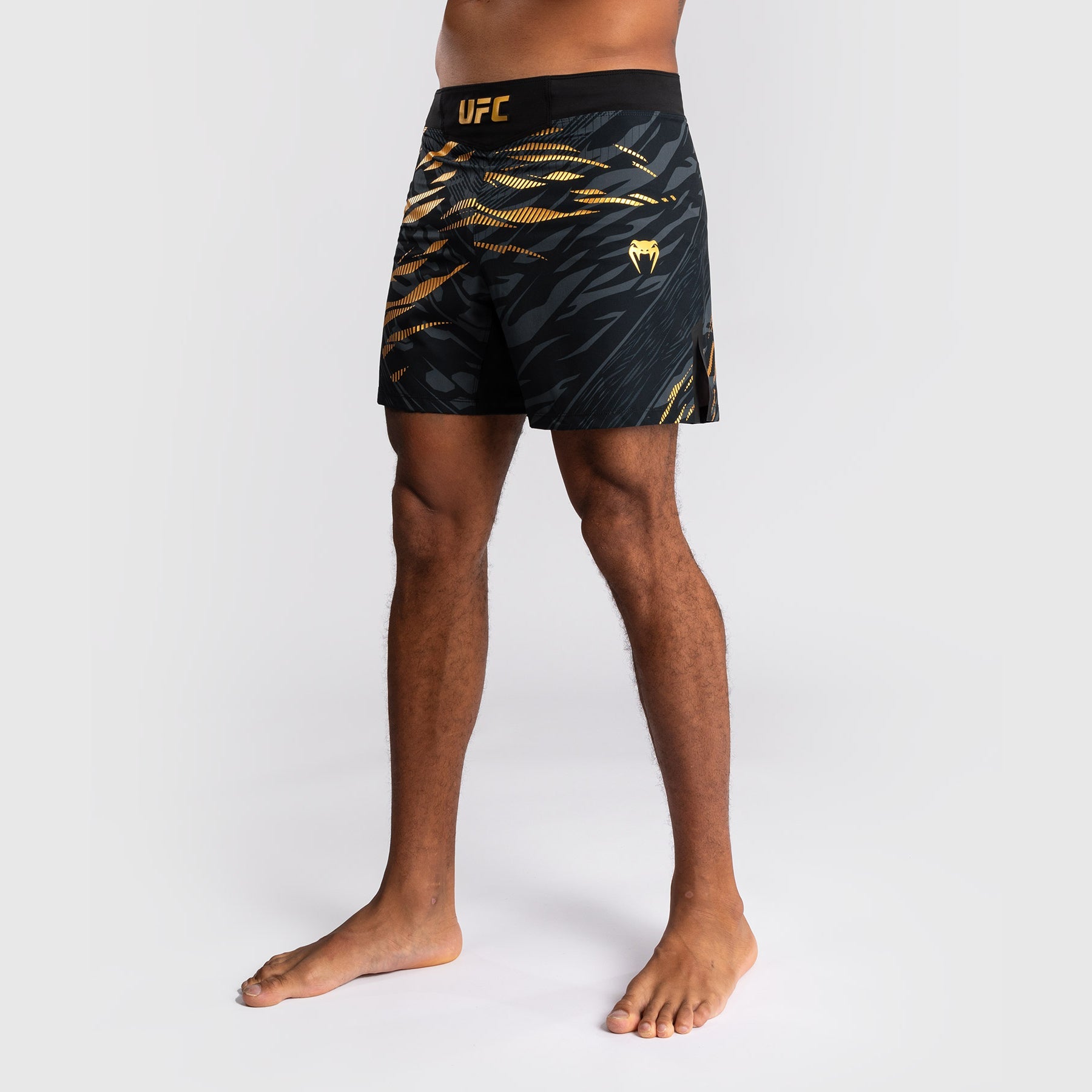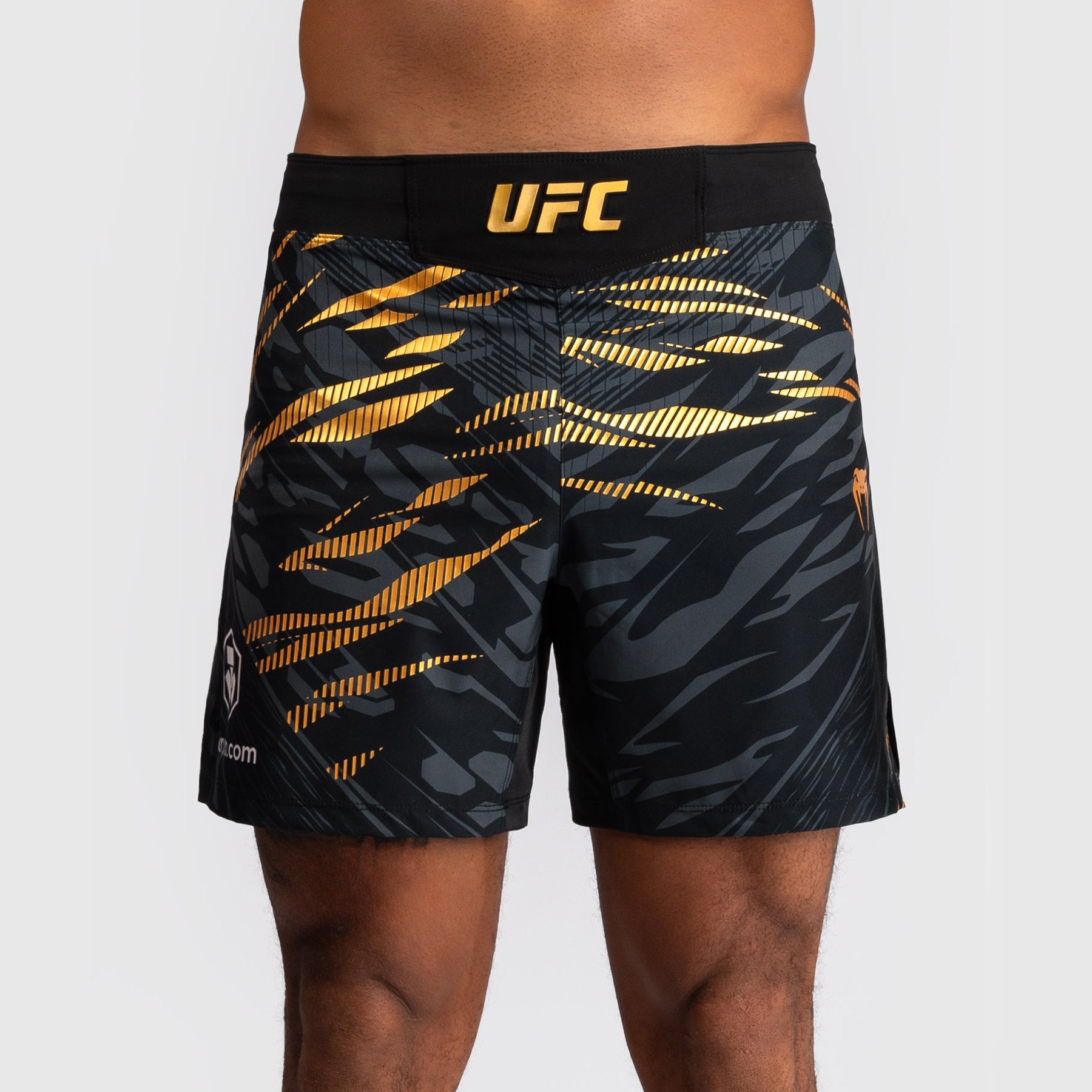 Conçus pour la mobilité et le confort, ces shorts de longueur mi-cuisse en Noir/Doré présentent des fentes thermo-collées sur les côtés pour une plus grande liberté de mouvement lors des travaux debout et au sol. Son tissu est léger, durable et flexible, tandis que la taille élastiquée offre un maintien sécurisé - le short idéal pour les sports de combat. Cette combinaison de couleurs Noir/Doré est réservée aux champions de l'UFC.