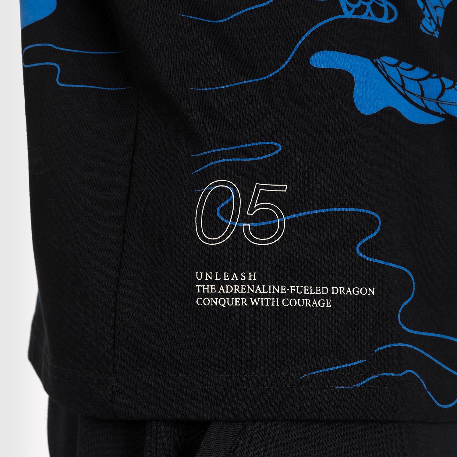 Le t-shirt Venum Dragon's Flight  est un t-shirt graphique à col ras du cou avec le dessin complexe d'un dragon chinois, capturé en plein vol et enflammé, en bleu nuit. Le motif s'étend sur la poitrine et l'ensemble du dos de ce t-shirt noir. Une petite étiquette brodée avec le logo Venum sur la manche ajoute une touche de finition à ce tee-shirt.
