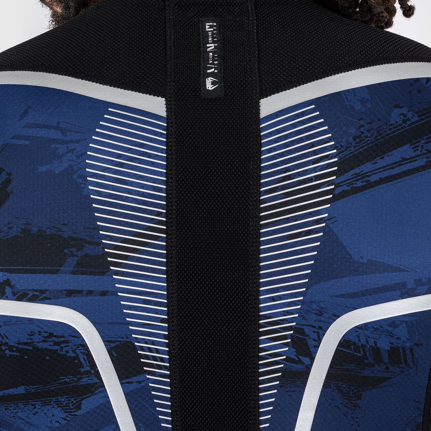L'imprimé camouflage à coups de pinceau en bleu marine confère au rashguard un style urbain, avec un logo Venum argenté sur la poitrine, les manches et l'arrière du cou.