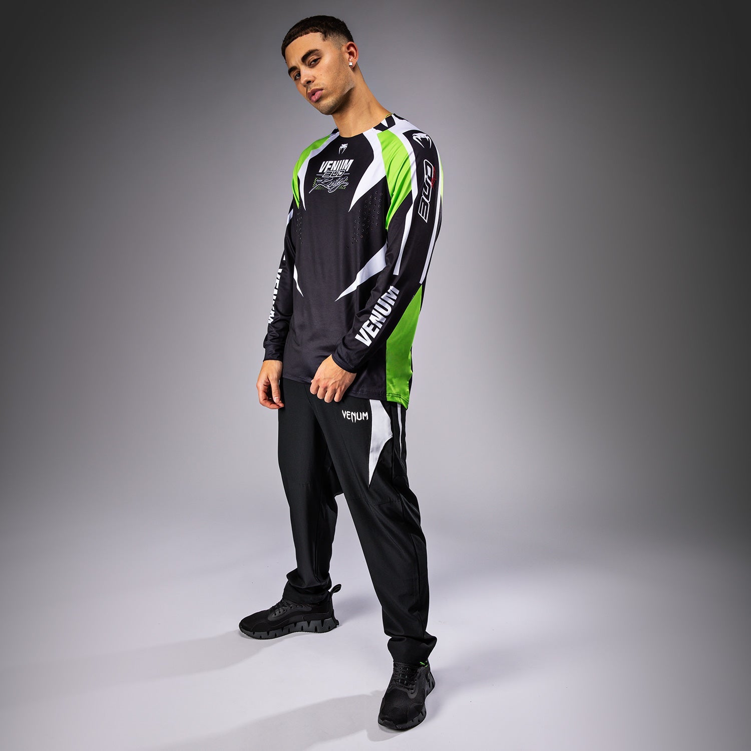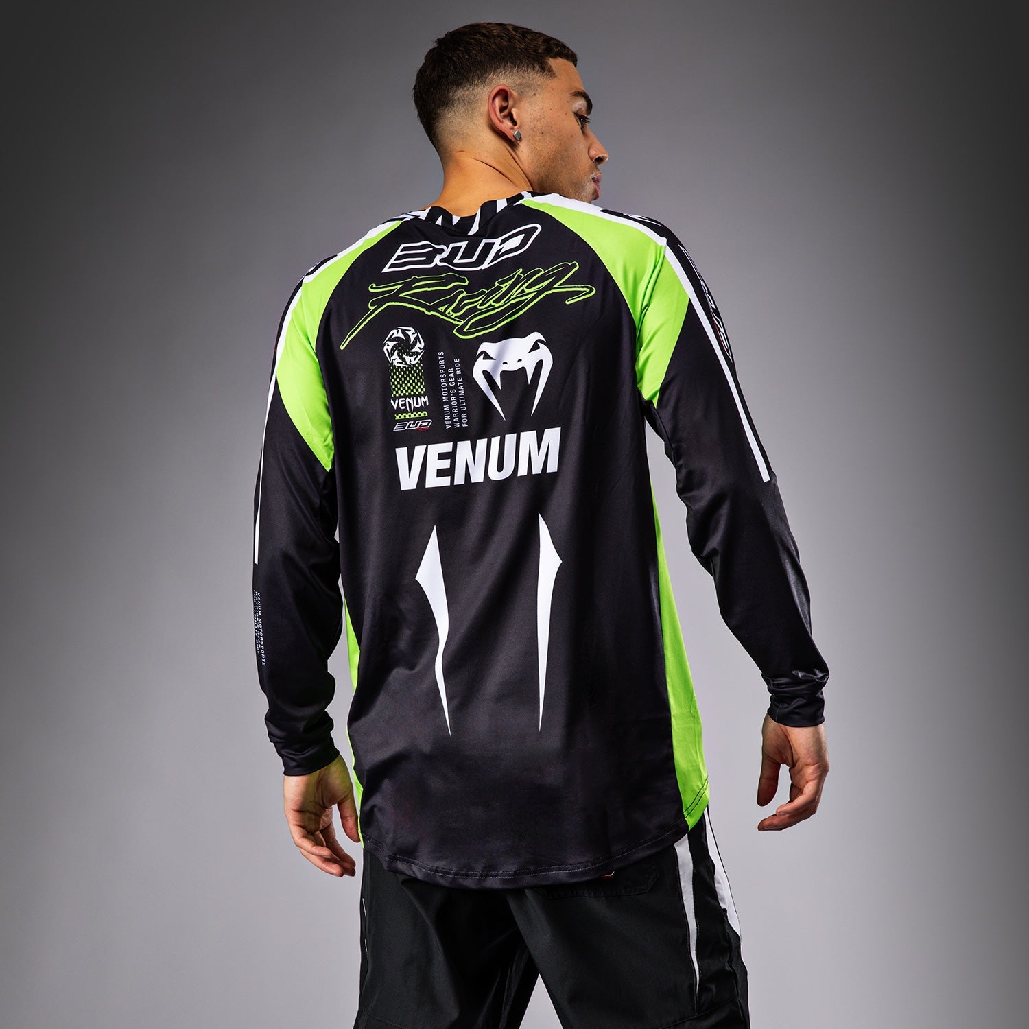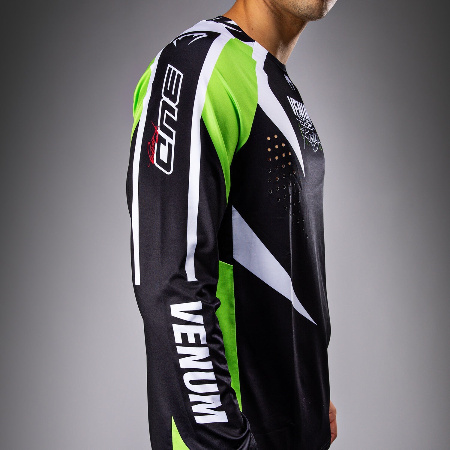 Le design s'inspire de la couleur vert lime de l'équipe Bud Racing et de son partenaire, Kawasaki. Sur la poitrine et dans le dos, des graphismes dynamiques ressemblant à des crocs mettent Venum en avant.