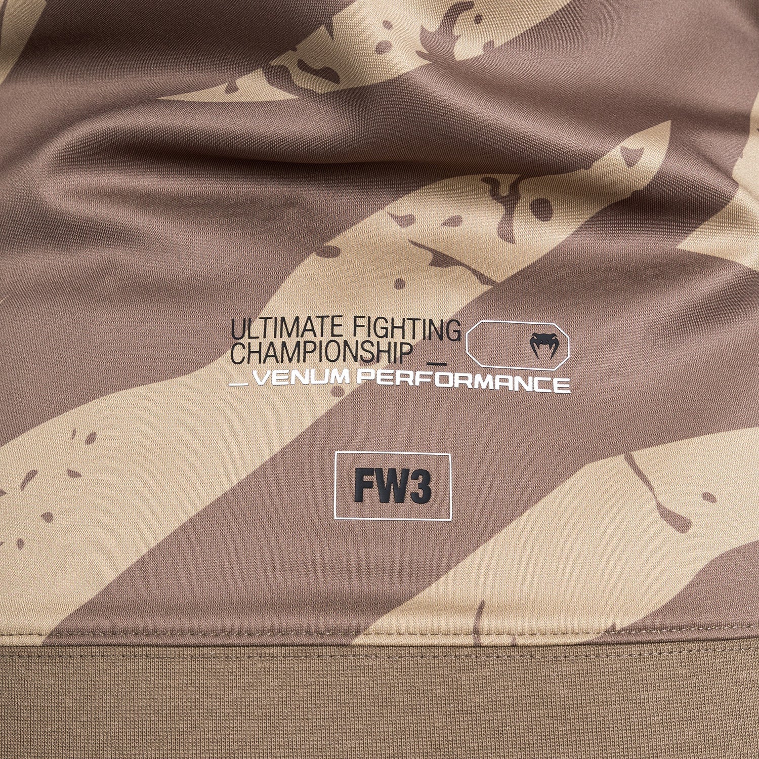 Son imprimé camouflage audacieux, agrémenté de détails blancs du logo Venum et de l'UFC, fait écho à l'expérience pleine d'adrénaline de la Fight Week, des séances d'entraînement médiatisées à la pesée officielle.