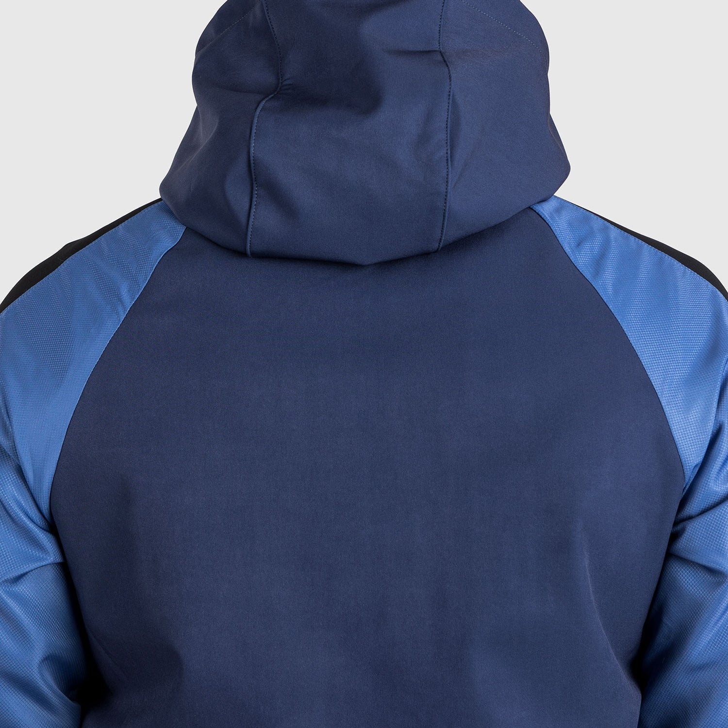 Les fermetures éclair noires et le logo Venum noir sur la poitrine contrastent avec les tons bleus du sweat à capuche pour une finition sportswear saisissante.